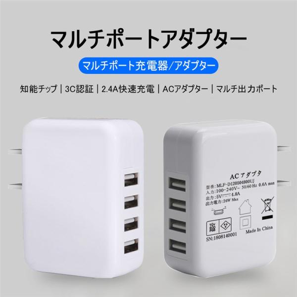 2.4A超高出力 最大出力4.8A USB4ポート 急速充電ACアダプター
