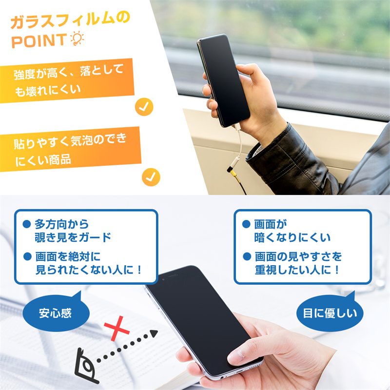 【覗き見防止】その名のとおり、のぞき見を防止するブラインド加工が施されている保護フィルムです。