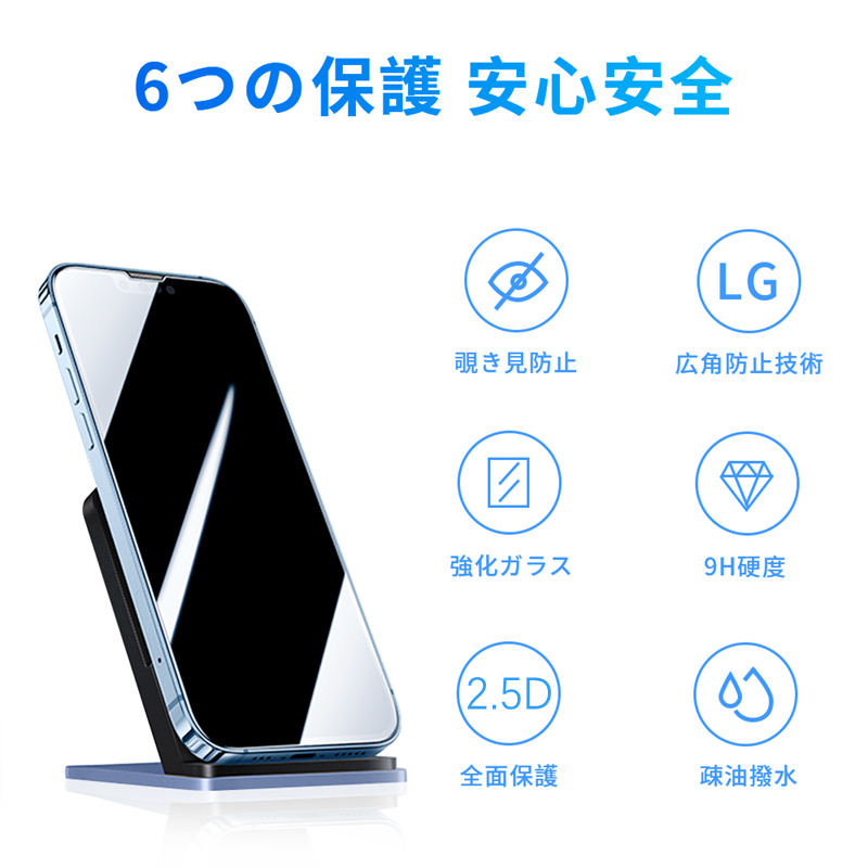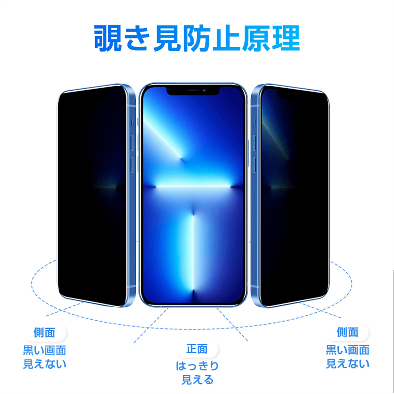 iPhone 13/14/15/16シリーズ 覗き見防止 強化ガラス保護フィルム