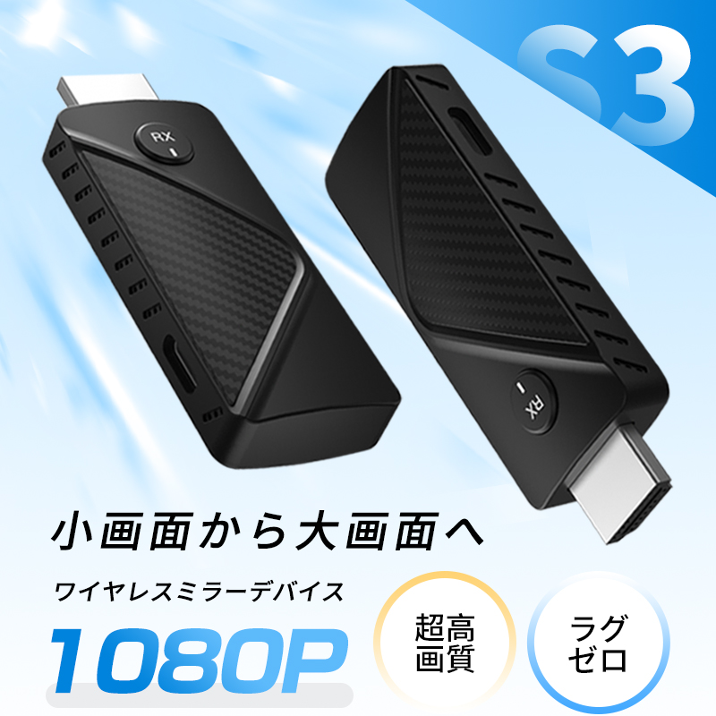 S3ワイヤレスミラリング(HDMI伝送ツール)は、次世代の無線映像伝送ソリューションです。1080P/60Hzの高精細画質を安定して伝送できる双方向通信システムで、会議室、教室、ホームシアターなど様々なシーンで活躍します。