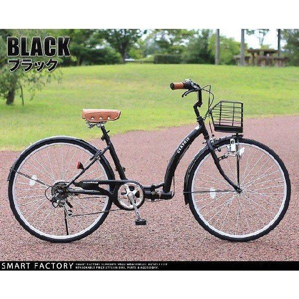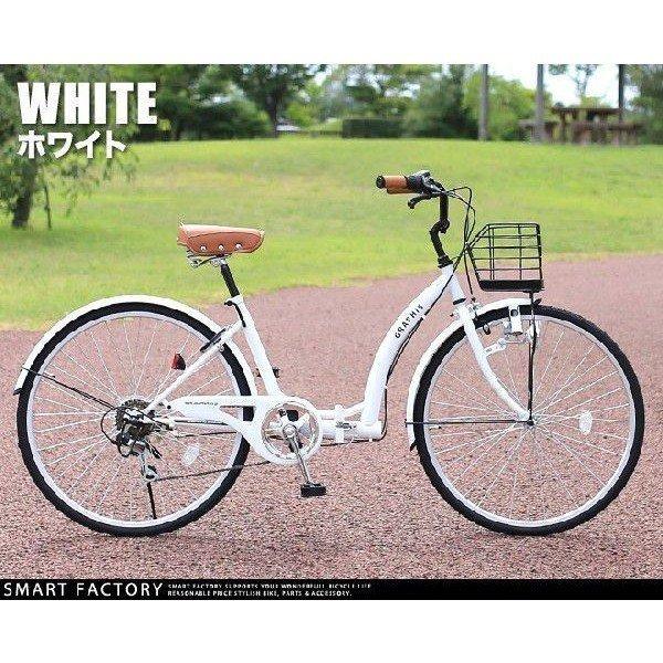 ママチャリ シティサイクル 【クーポン最終日】 26インチ カゴ ライト 鍵 シマノ 6段変速 5色 折りたたみ自転車