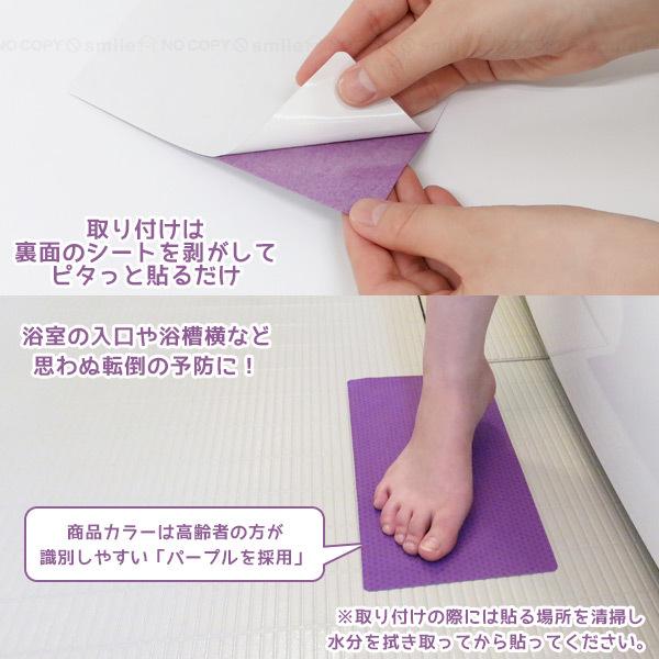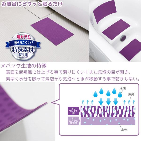 滑り 止め 浴室内 転倒防止 シート マット 浴槽 手すり 貼るだけ ヌバック生地 乾きやすい あんしん 安心 薄い 薄型 吸盤なし カットOK パープル 日本製 202103-02