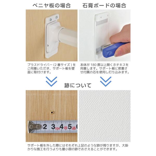 石こうボードやベニヤ板に固定し、突っ張り棒や突っ張り棚を強力に支えます。