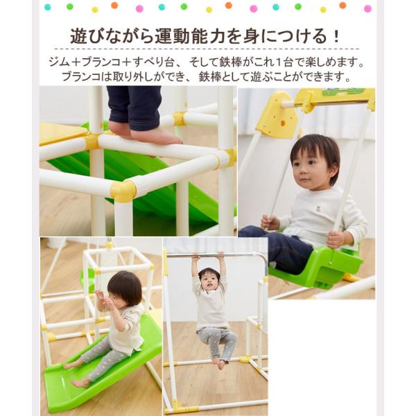 商品説明 お子様の大好きなブランコ、鉄棒、すべり台もついた、お部屋で遊べるジャングルジムです。