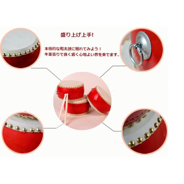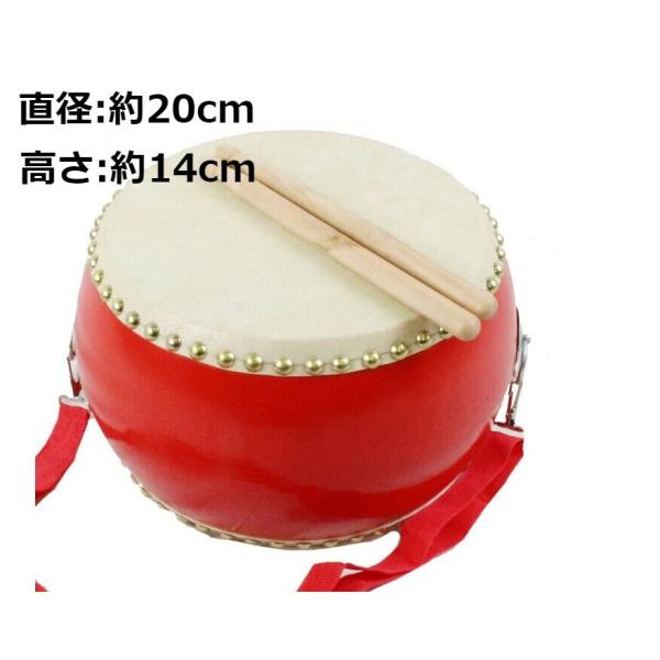 太鼓 おもちゃ 小太鼓 バチ2本 ショルダーベルト付 子供 キッズパーカッション 太鼓練習 盛り上げ太鼓 本格牛革張/和太鼓 打楽器 (直径 20cm)