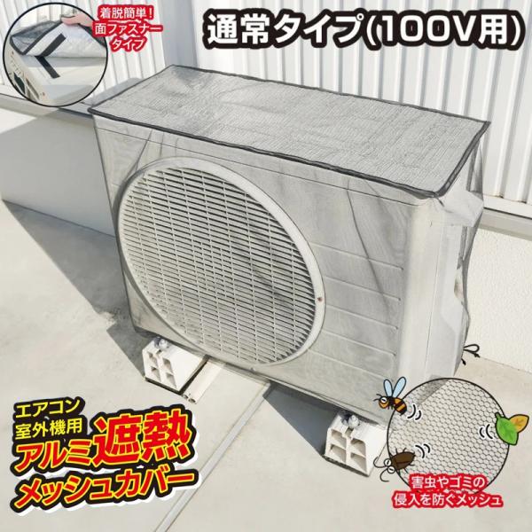 エアコン室外機カバー アルミ 日よけ エアコン室外機用 アルミ遮熱メッシュカバー アルミ製 大型 日除け エアコン遮熱シート 日よけカバー メール便