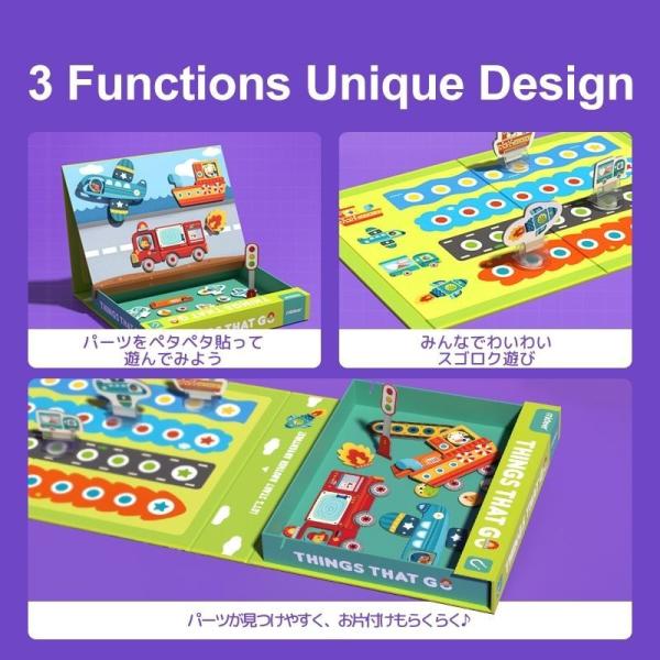 貼ってはがして繰り返し使えるマグネット仕様のため、遊びのたびにレイアウトを変えられ、想像力や考える力を楽しく刺激。