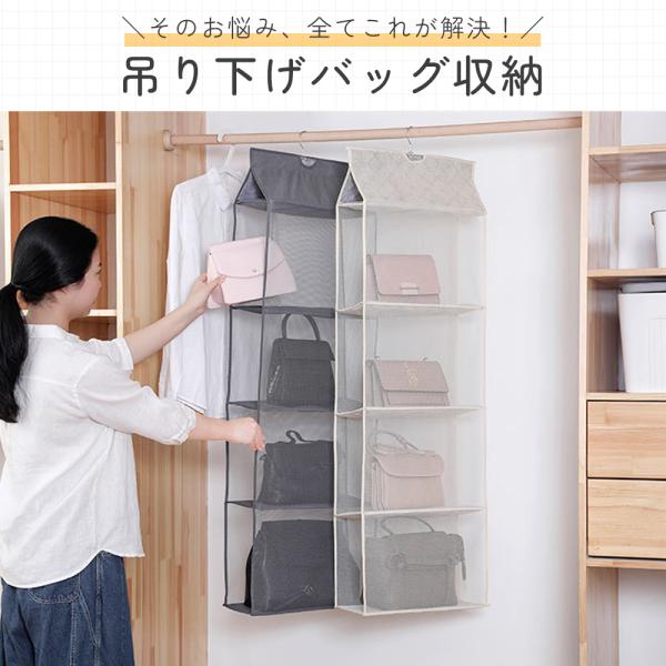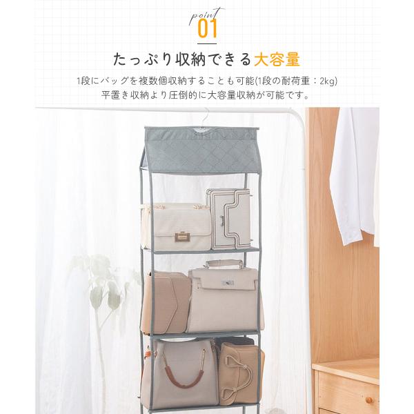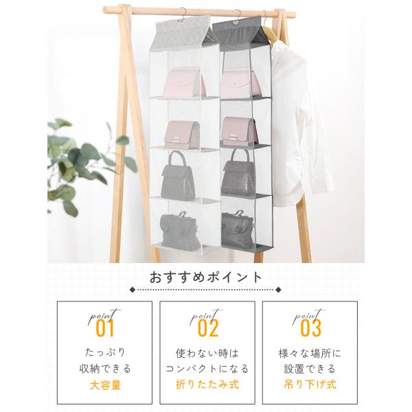 吊り下げ収納 クローゼット 収納 バッグハンガー 折りたたみ バッグ 収納ラック ハンガー カバン 収納ラック 壁掛け ハンガーラック 衣類ラック 4段式