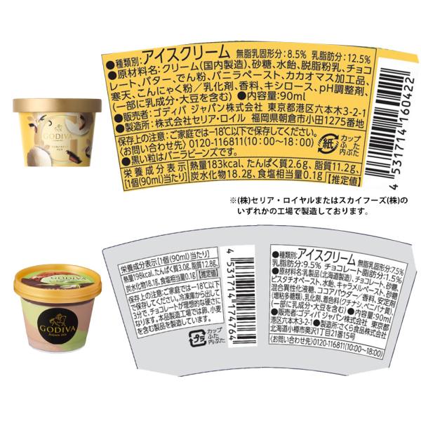 30年の歴史を持つ総合食品卸会社が運営し、家庭用から業務用まで幅広いニーズにお応えする、Smile Spoonが厳選したアソートセットです!異なる魅力的な商品をお楽しみいただけます。[アイス] ゴディバ ピスタチオ チョコレート 90ml×1個/[アイス] ゴディバジャパン チョコレートチップ バニラ 90ml×1個/[アイス] ゴディバ ダーク チョコレート 90ml×1個/[アイス] ゴディバ ダブルベリー チーズケーキ 90ml×1個/[アイス] ゴディバ ストロベリーミルフィーユ 90ml×1個/[アイス] ゴディバ ティラミス 90ml×1個/[アイス] ゴディバ バニラ チョコレート 90ml×1個/を詰め合わせております。