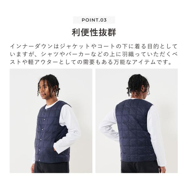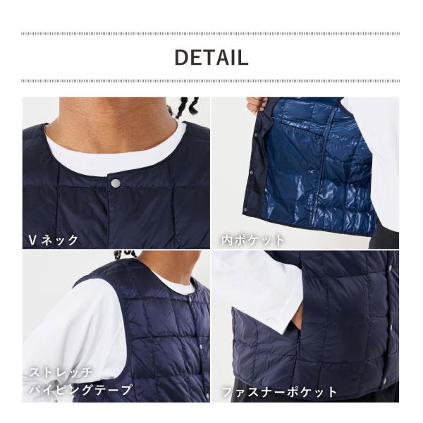 TAION タイオン インナーダウン ベスト ジレ アウター ベーシック クルーネックボタン メンズ ブラック グレー ネイビー ベージュ オリーブ 黒 TAION-004