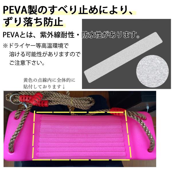 紫外線耐性・防水性があるPEVA製のすべり止めにより、ずり落ちを予防します。※ドライヤー等高温環境で溶ける可能性がありますので、ご注意下さい。