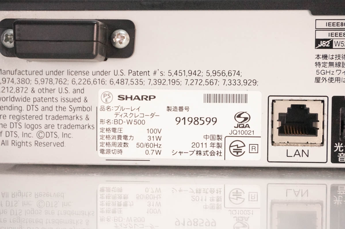 中古 SHARPシャープ ブルーレイディスクレコーダー AQUOSアクオスブルーレイ HDD500GB Wチューナー BD-W500