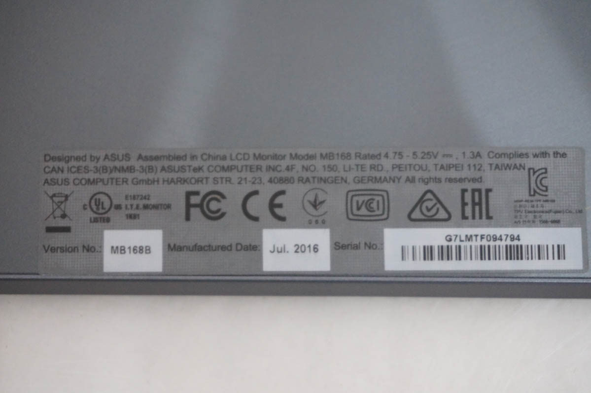 中古 ASUSエイスース 15.6型 WXGA USBディスプレイ MB168B LEDバックライト ポータブルモニター