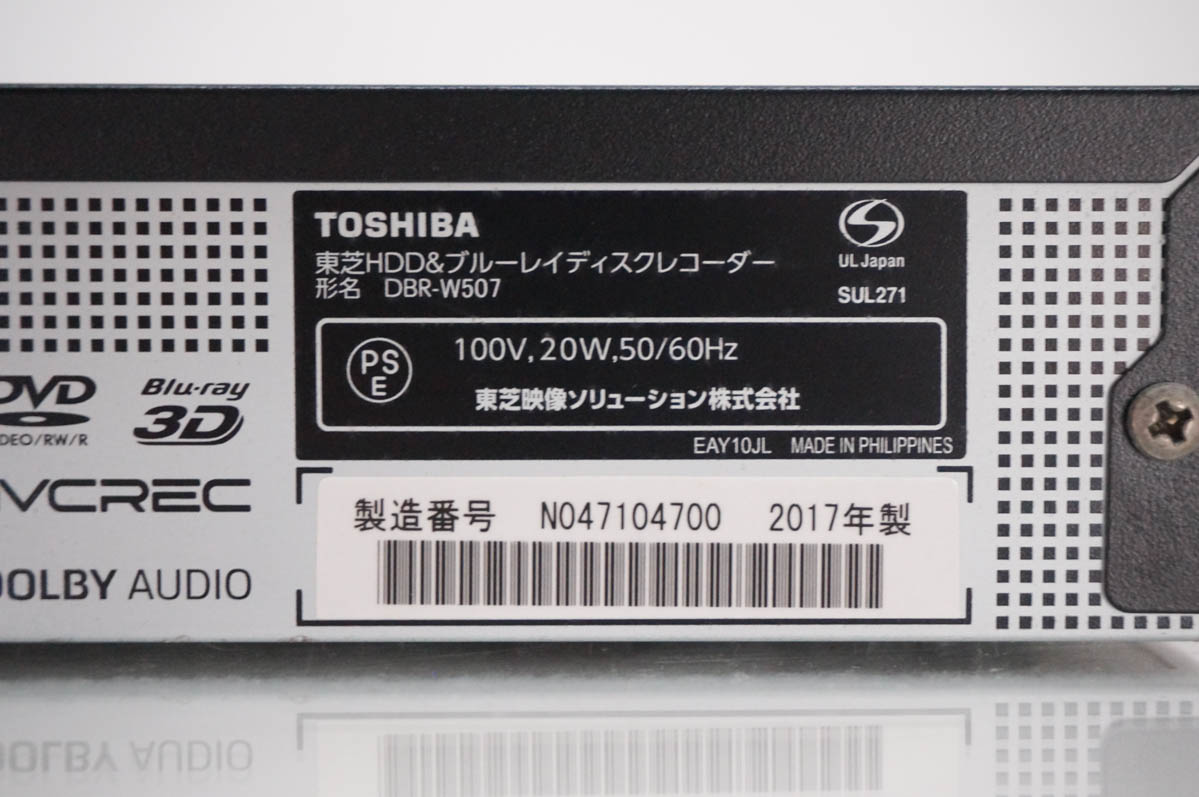 中古 東芝TOSHIBA ブルーレイレコーダー DBR-W507 Wチューナー レグザブルーレイ 500GB
