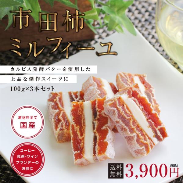 スイーツ 市田柿ミルフィーユ 3本セット 干し柿 ミルフィーユ 市田柿 カルピスバター 贈答品 ギフト 内祝 誕生日 おつまみ ワイン 2026 送料無料 爆買