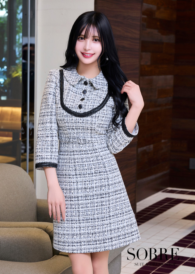 パーティードレス キャバドレス ナイトドレス 結婚式 キャバクラ 大きいサイズ ノッチツイードプリーツワンピース
