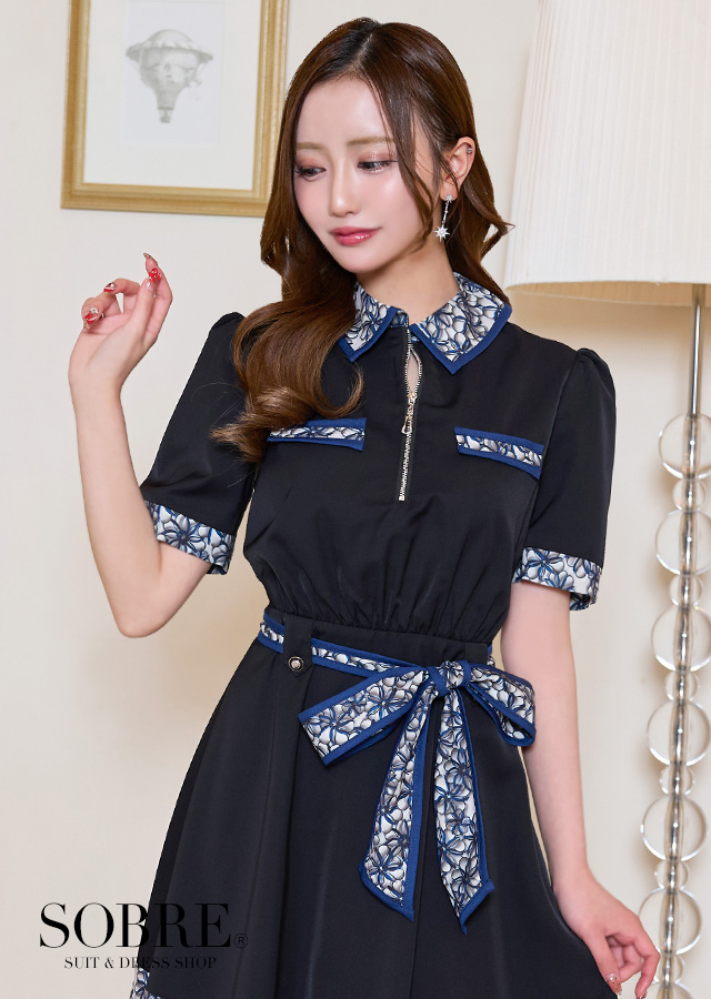 大人っぽいニュアンスフラワーのコントラストが洒落感のあるミニワンピース。