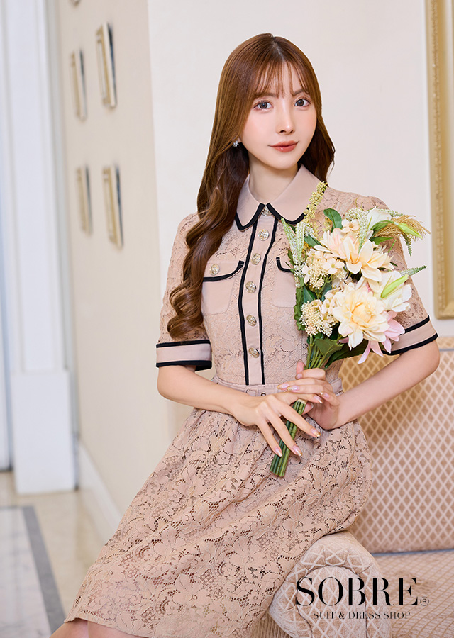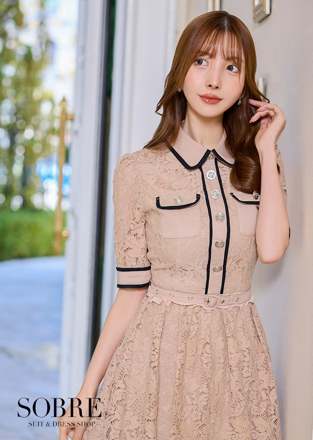 清楚な襟付きにブラックパイピングで程よく甘さをおさえた大人デザイン。