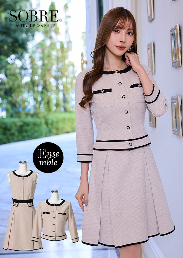 【予約販売_2月中旬頃発送】ドレス キャバドレス 結婚式 キャバクラ 大きいサイズ スーツ コンパニオン 入学式 卒業式 制服 ノーカラーワンピースアンサンブル