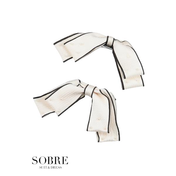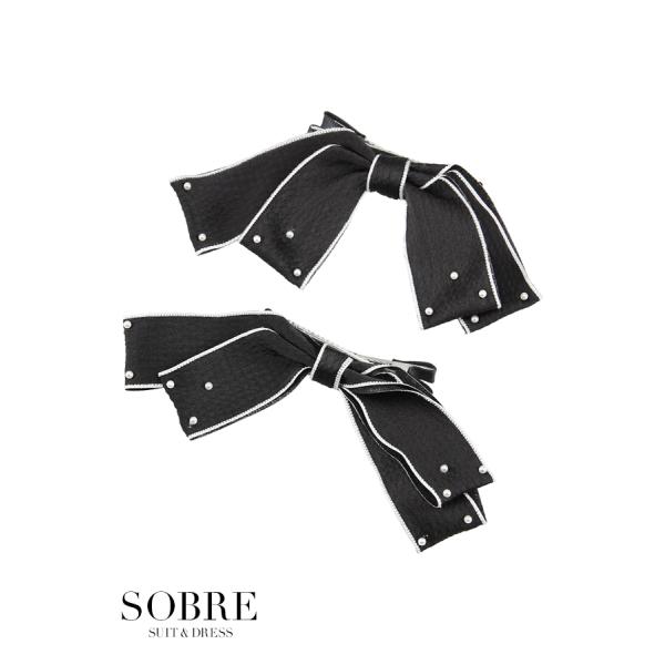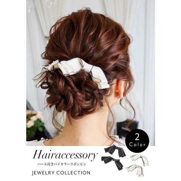 パール付きバイカラーリボンピン【2個セット】アクセサリー アクセ レディース キャバ パーティ パーティー 結婚式 二次会