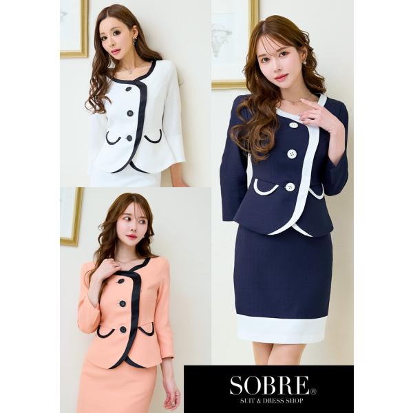 ナイトスーツ ママスーツ キャバスーツ 大きいサイズ 17号 仕事 イベント コンパニオン キャバクラ 入学式 卒業式 制服 ノーカラー配色スーツ 爆買
