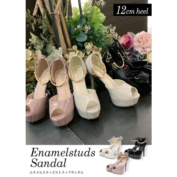 スタッズストラップサンダル 12cmヒール ブラック キャバ サンダル パンプス ミュール 厚底 ソブレ レディースシューズ レディース 爆買