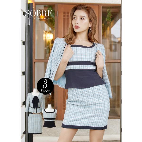 【SALE価格】キャバスーツ 大きいサイズ キャバ スーツ コンパニオン ソブレ 格子ツイード3点スーツ 返品交換不可