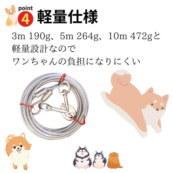 犬 ランナーケーブル ハーネス 長い ロングリード ドッグリード 係留 ワイヤー リード 5m
