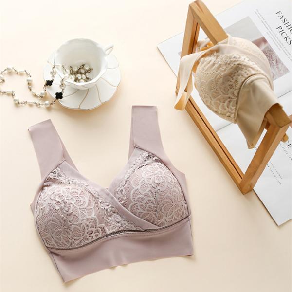 ブラジャー ノンワイヤー レース切替 レディース 大きいサイズ M-7L ナイトブラ シームレス 薄い 通気性 インナー ノンストレス 202411 202412