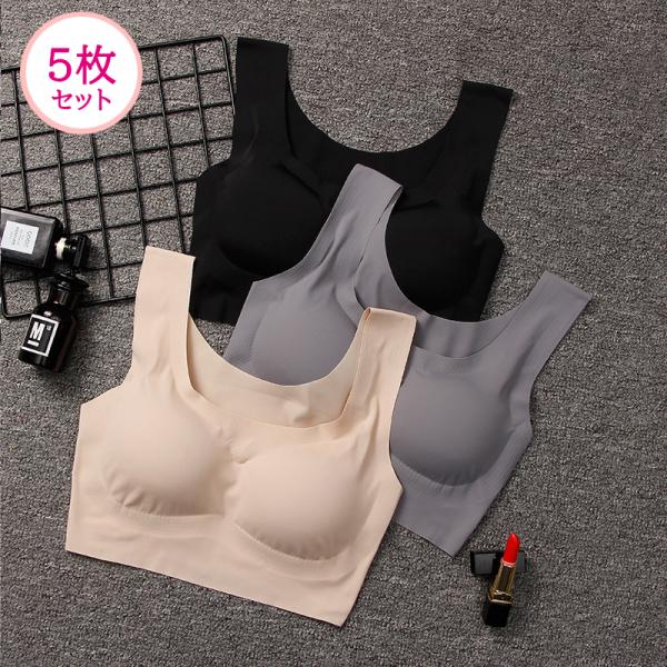 5枚組 シームレスブラ ナイトブラ レディース 大きいサイズ S-3L ブラジャー ノンワイヤー パッド付き スポーツブラ 下着 202209 202210