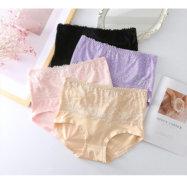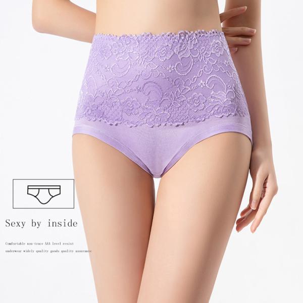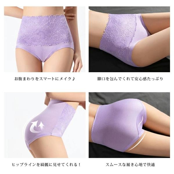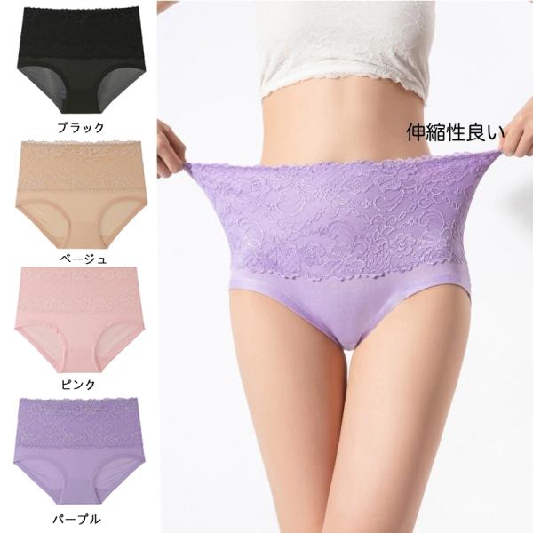 即納入荷 格安配送 単品 ショーツ ハイウエスト 深履き 下着 全4色 レディース 大きいサイズ M-7L レース付き らくのび