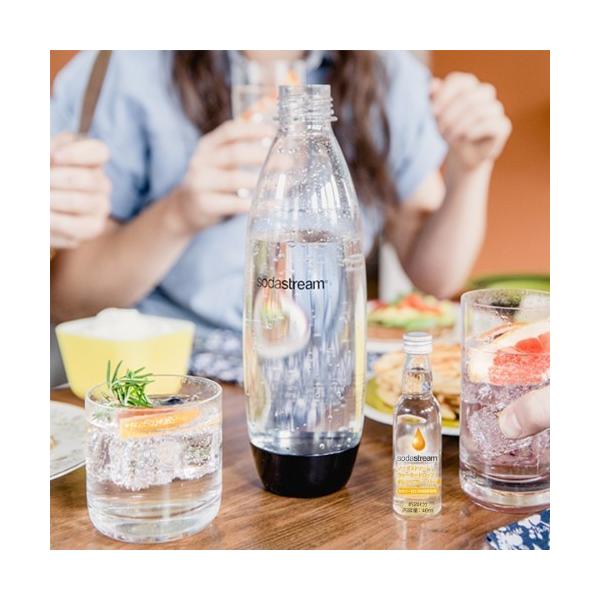 1. ソーダストリームで作った炭酸水1リットルに対し、およそ小さじ1/2のウォータードロップを専用ボトルへ入れてください。