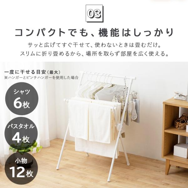 サッと広げて、すぐ干せる、簡単組立スタイル物干し。