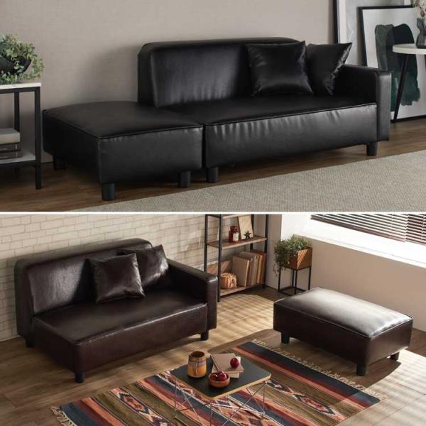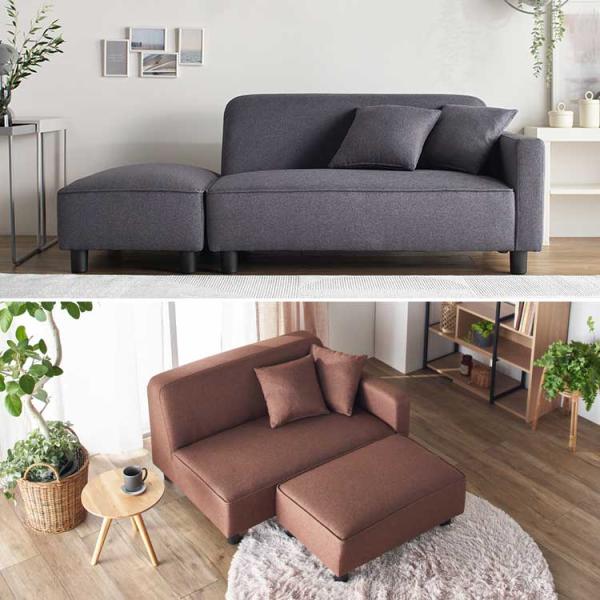 [激熱◇2026円OFFクーポン] ソファー 2人掛け オットマン クッション付 コンパクト ファブリック 合成皮革 ローソファー ロータイプ カウチソファー *