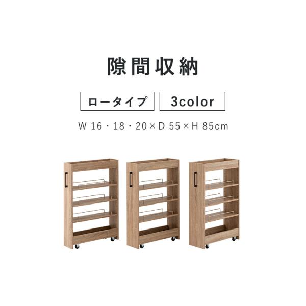 隙間収納 キッチンラック 20cm 18cm 16cm スリム キッチン 洗面所 収納 キッチンワゴン 隙間ワゴン おしゃれ キャスター付き (D)
