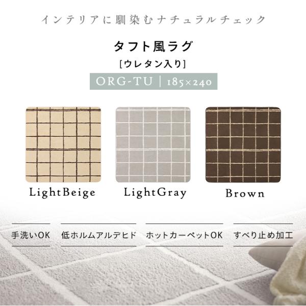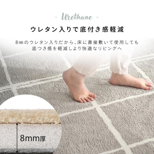 (検索用:約3畳 ホットカーペット対応 すべり止め加工 手洗いOK 8mm厚ウレタン チェック柄 ナチュラルデザイン 長方形 )