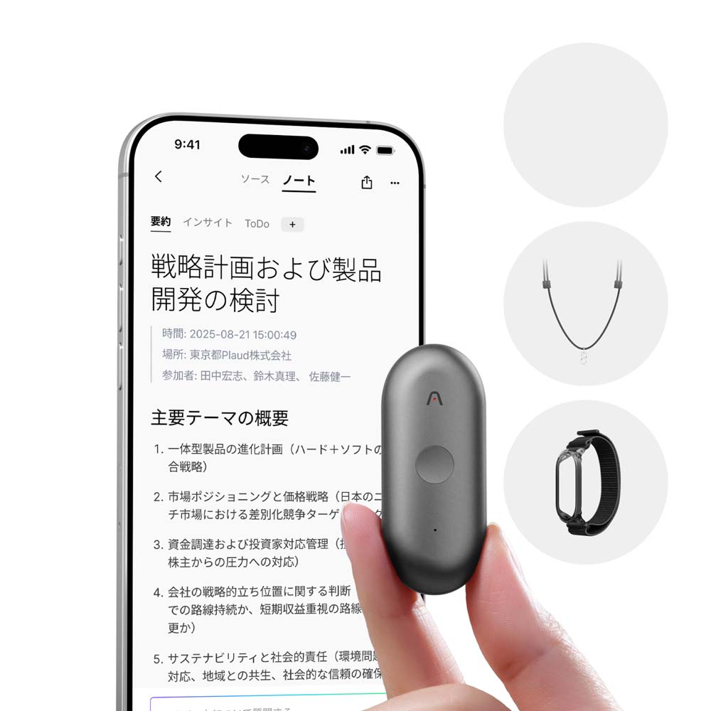 身に着けられる ワンタッチで録音 AIボイスレコーダー
