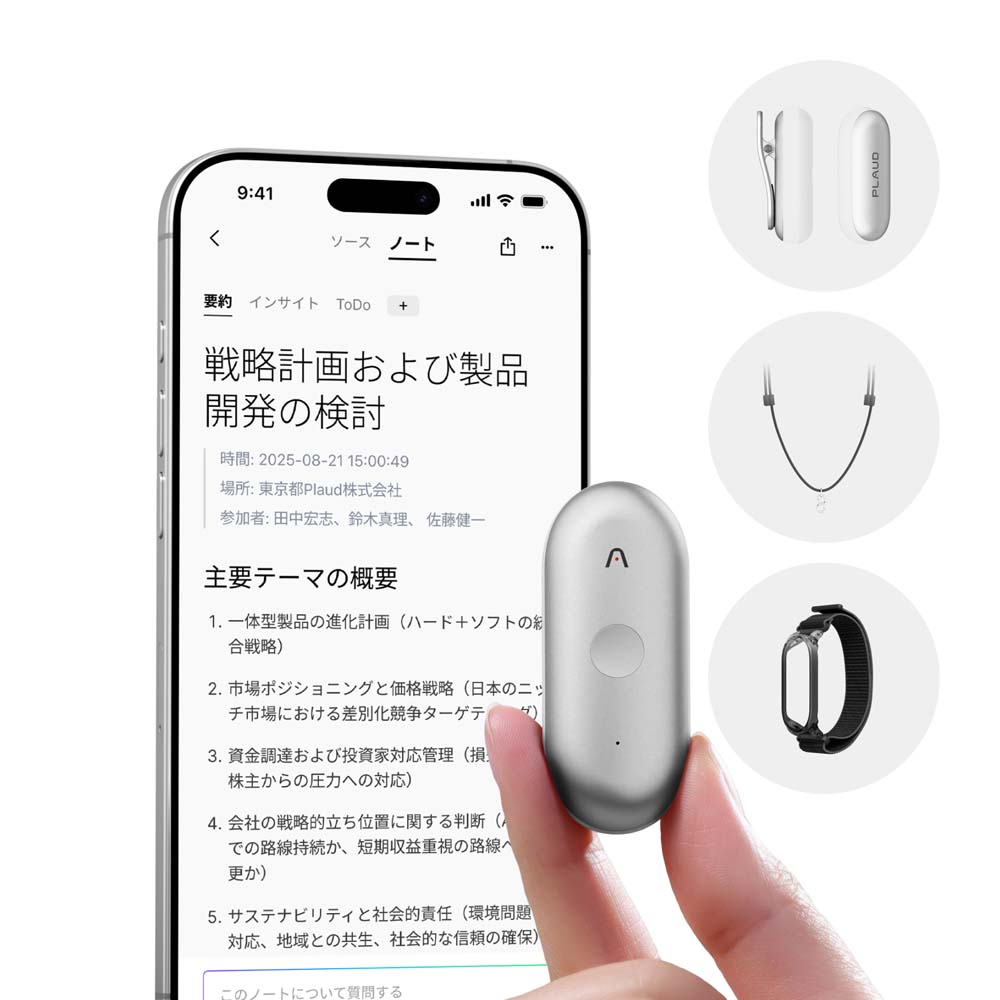 【正規販売代理店】Plaud NotePin S AIボイスレコーダー ウェアラブル録音デバイス