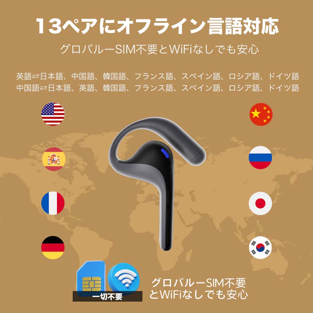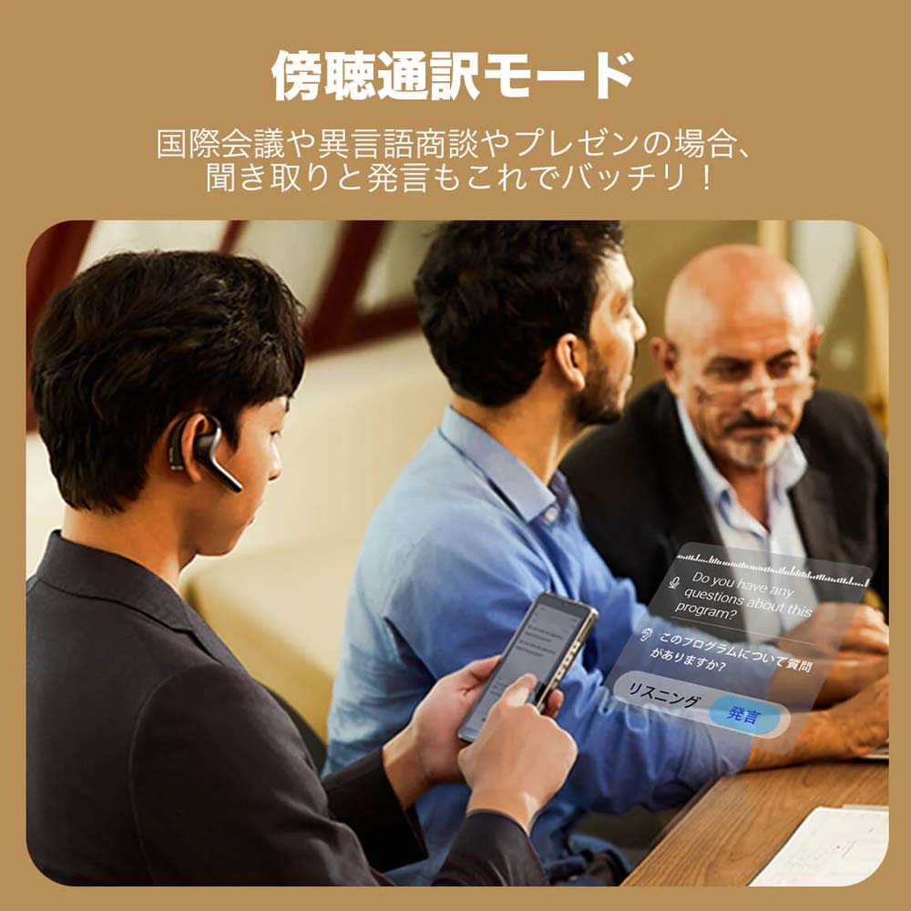 AI通訳イヤホン 議事録作成 40言語対応 海外ビジネス 音楽再生も