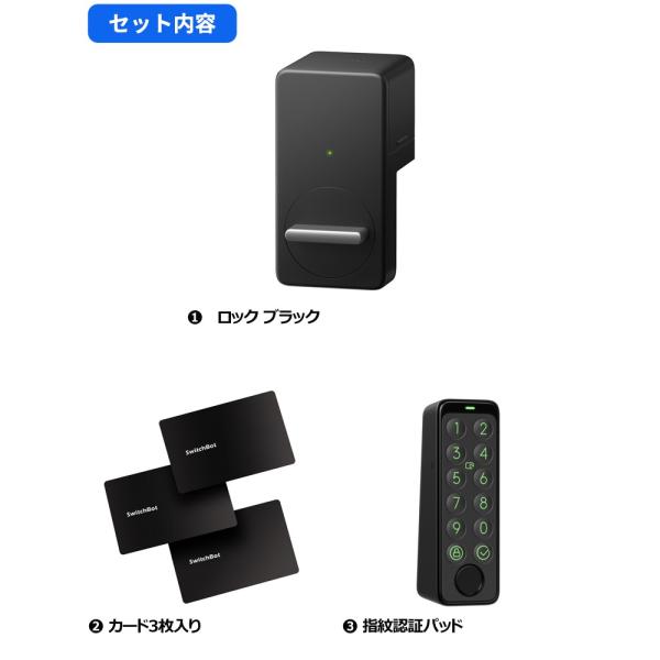 SwitchBot スイッチボット ロック ブラック&指紋認証パッド&カード3枚入り セット