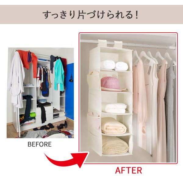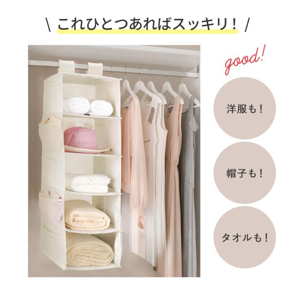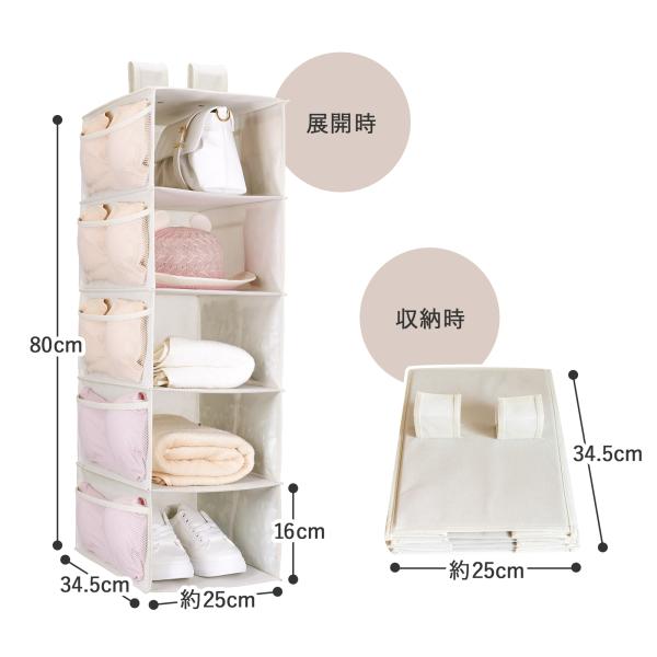吊り下げ収納 5段 小物収納 折りたたみ 衣類 省スペース