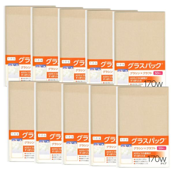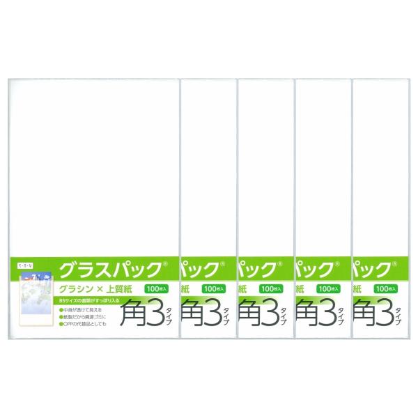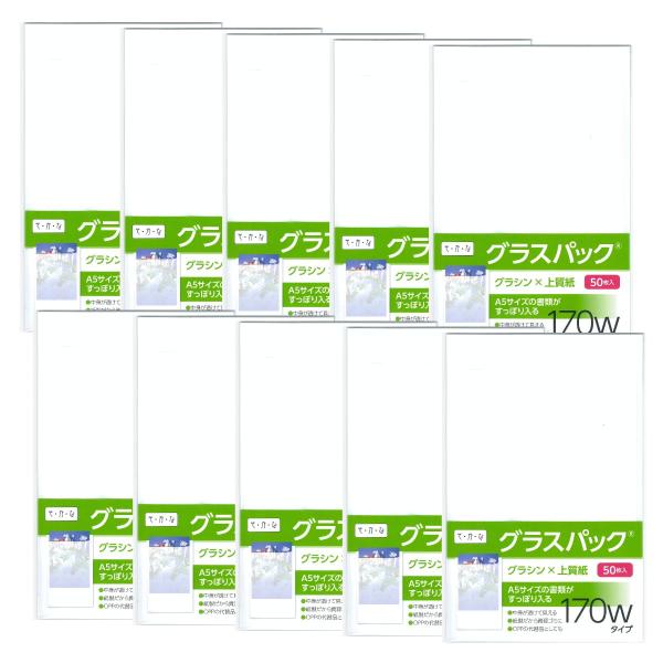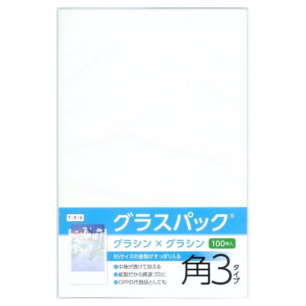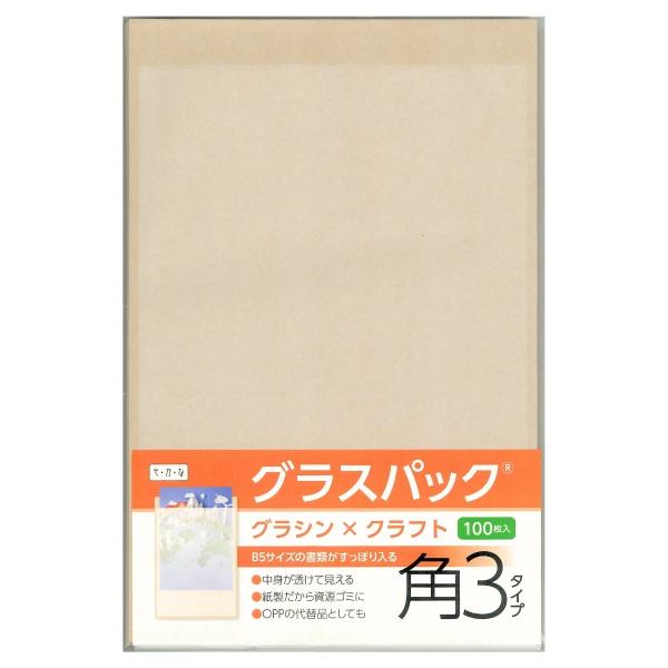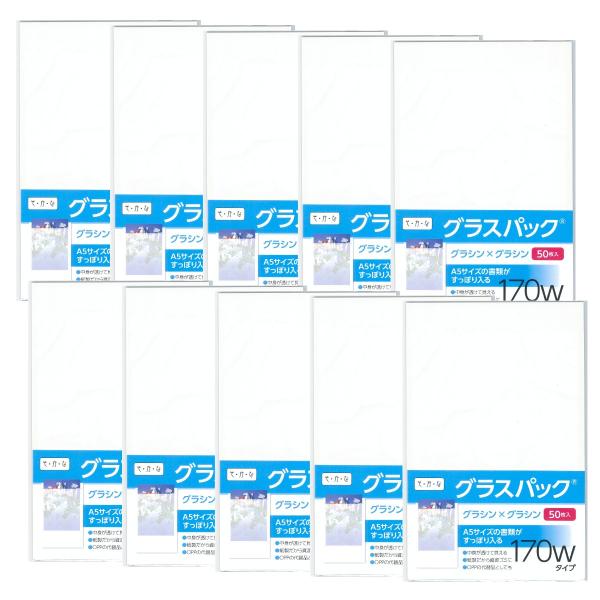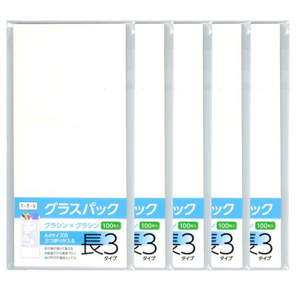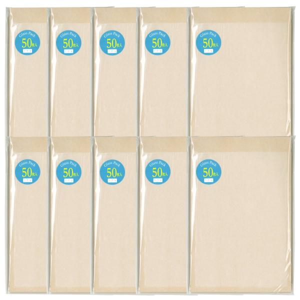 グラスパック 長3タイプ 50枚 グラシン紙/白上質紙 白無地 A4三つ折り対応 半透明 透ける紙袋 平袋 封筒