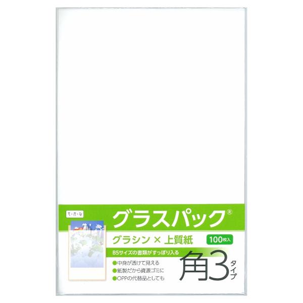グラスパック 角3タイプ 100枚 グラシン紙/白上質紙 白無地 B5対応 半透明 透ける紙袋 平袋 封筒
