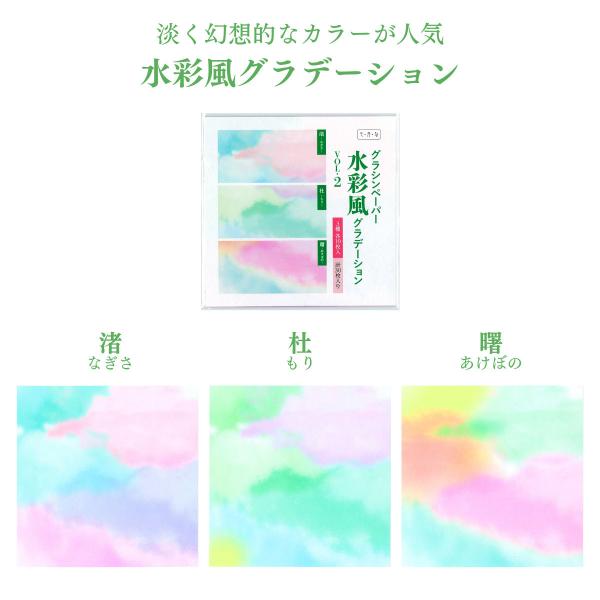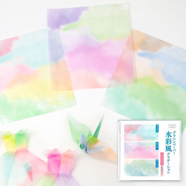 グラシン紙 水彩風グラデーション 3色アソート 折り紙サイズ 15×15cm 彩雲 乙女カラー 透けるデザインペーパー 薄葉紙 ラッピング