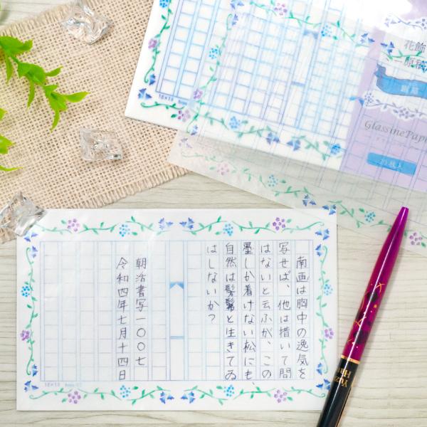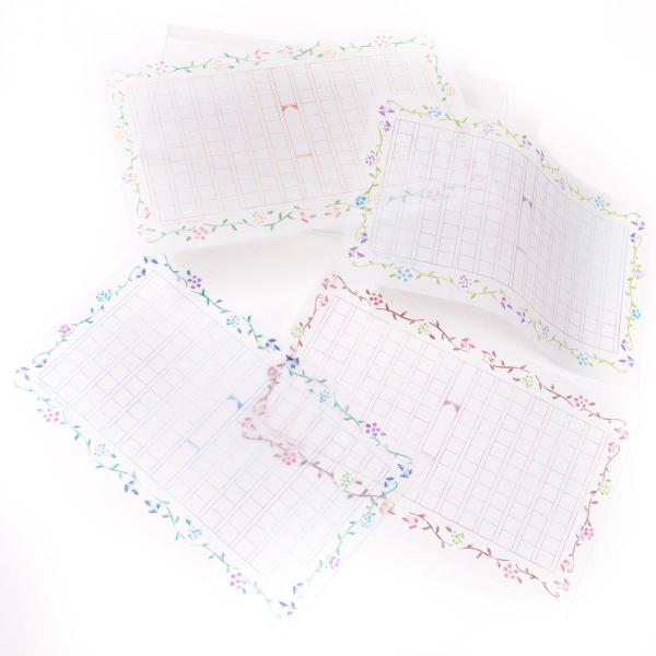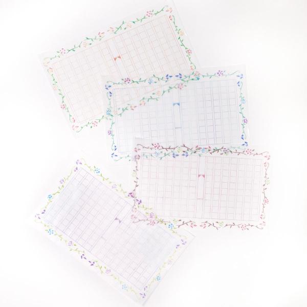 グラシン紙 ミニ原稿用紙 花飾り 20枚入り 透ける一筆箋 便箋 縦書き140文字 朝活書写 デザインペーパー