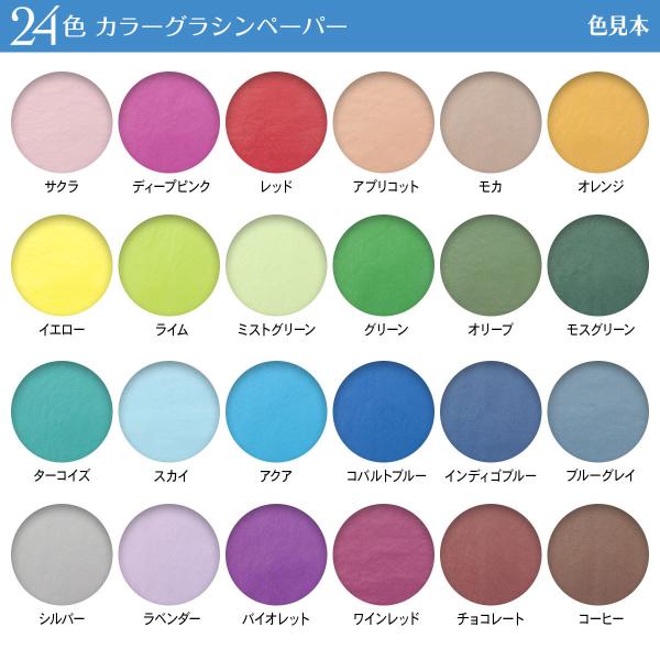 カラーグラシン紙24色を各10枚必要な方のために、お得なコンプリートセットをご用意。