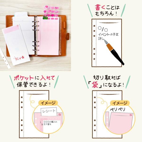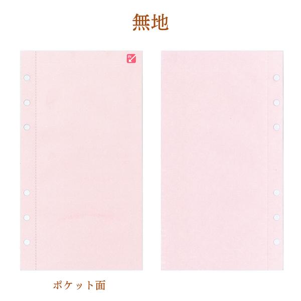 メモ レシート整理 ポケット付き手帳リフィル 平袋 罫線 方眼 ウィークリー 白 ピンク バイブルサイズ 6穴 上質紙 95x170mm