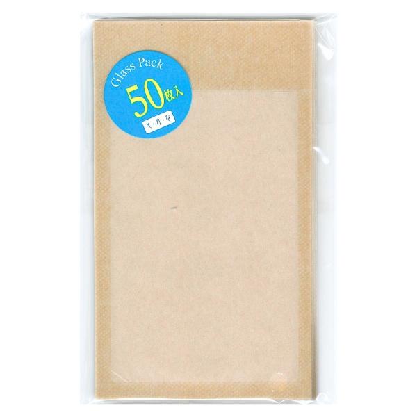 グラスパック ポチ袋 50枚 グラシン紙/クラフト紙 茶無地 名刺サイズ対応 半透明 透ける平袋 小袋