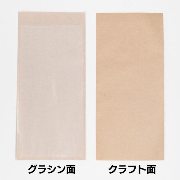 グラスパック 長3タイプ 100枚 グラシン紙/クラフト紙 茶無地 A4三つ折り対応 半透明 透ける紙袋 平袋 封筒