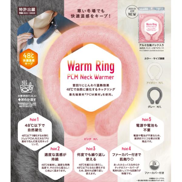 ウォームリング 温感リング ホットリング Warm Ring 保温 防寒グッズ 寒さ対策 ファーカバー付 温感ネックリング ネックウォーマー 軽量 電気不要 繰り返し使用